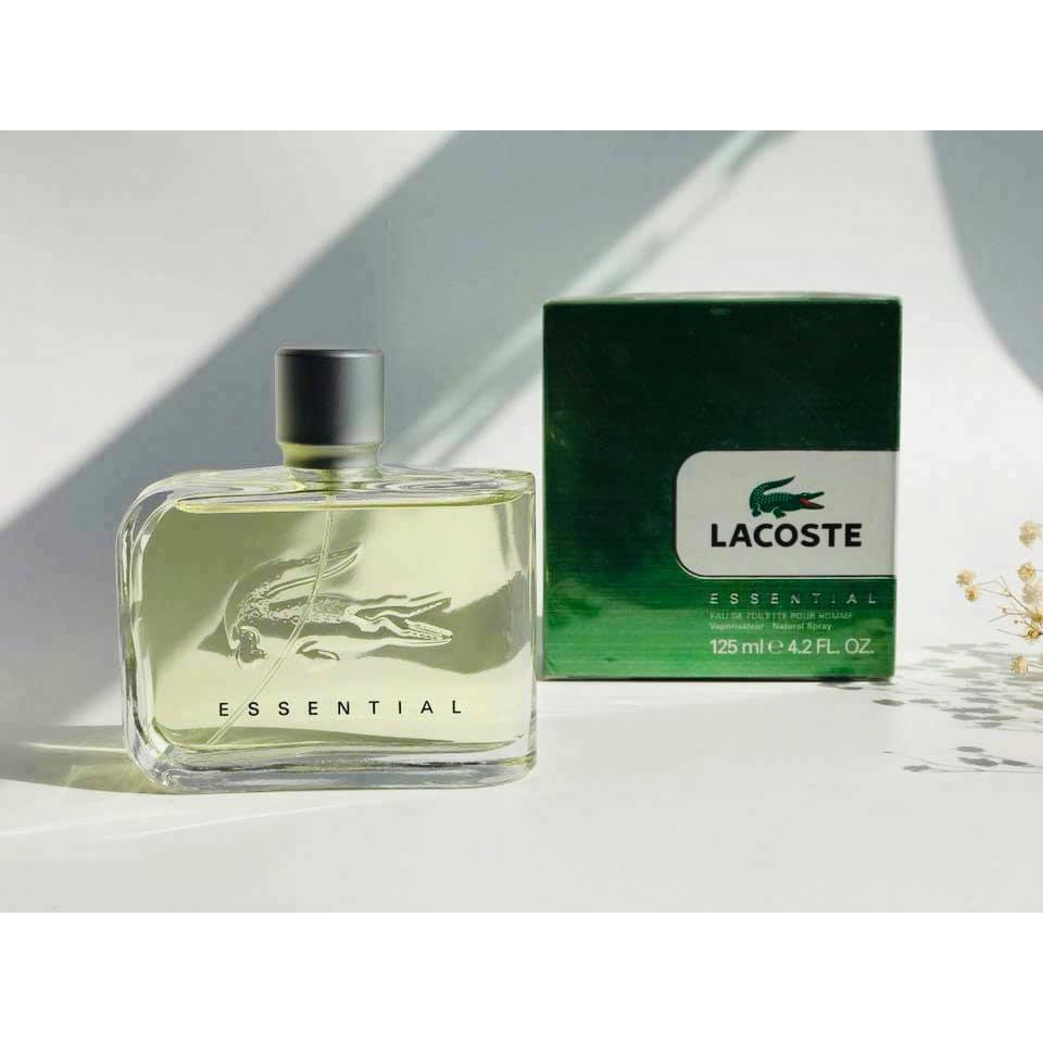 Thương hiệu Lacoste đã giới thiệu hương thơm Essential thuộc dòng hương gỗ – aromatic vào năm 2005. Essential mở ra hương đầu trong giai điệu hài hòa của bã đậu, cam Bergamot, quýt Morocco và lá cà chua; hương giữa mời gọi khứu giác với vị hồ tiêu và chiết xuất hoa hồng; hương cuối lại ấm áp trong hơi thở đàn hương và hoắc hương.